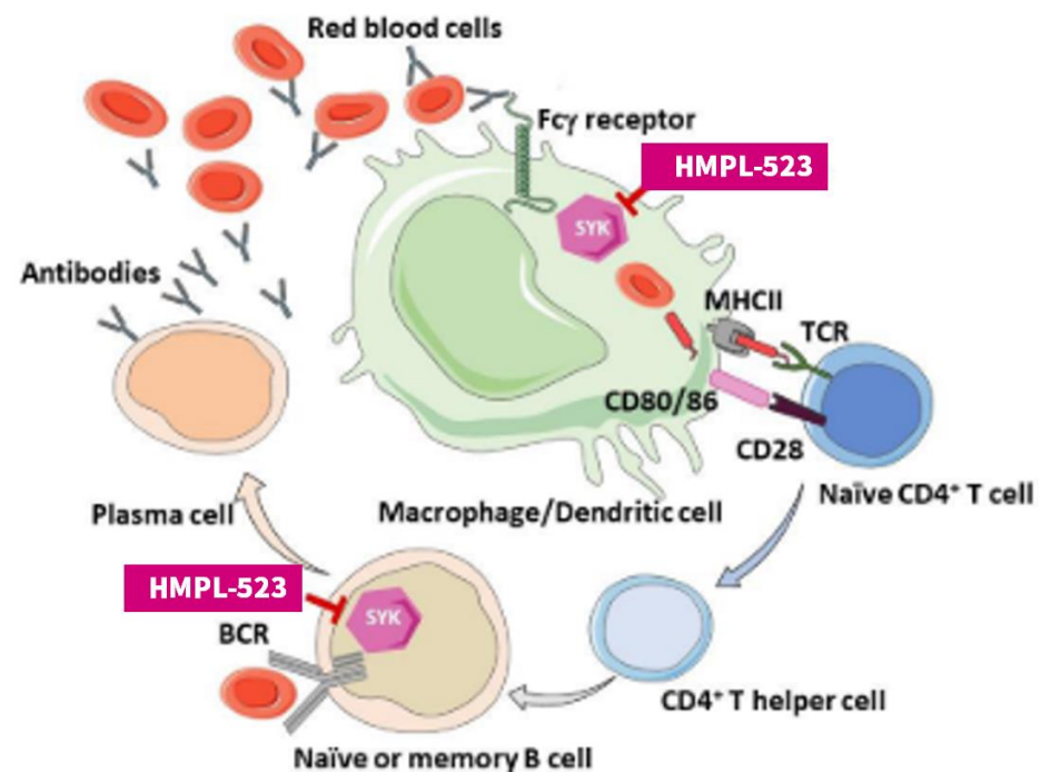 7. Liu X, Zhou H, Hu Y, Yin J, Li J, Chen W, Huang R, Gong Y, Luo C, Mei H, Ding B, Gu C, Sun H, Leng Y, Ji D, Li Y, Yin H, Shi H, Chen K, Wang J, Fan S, Su W, Yang R. Sovleplenib (HMPL-523), a novel SYK inhibitor, for patients with primary immune thrombocytopenia in China: a randomised, double-blind, placebo-controlled, phase 1b/2 study. Lancet Haematol. 2023 Jun;10(6):e406-e418.