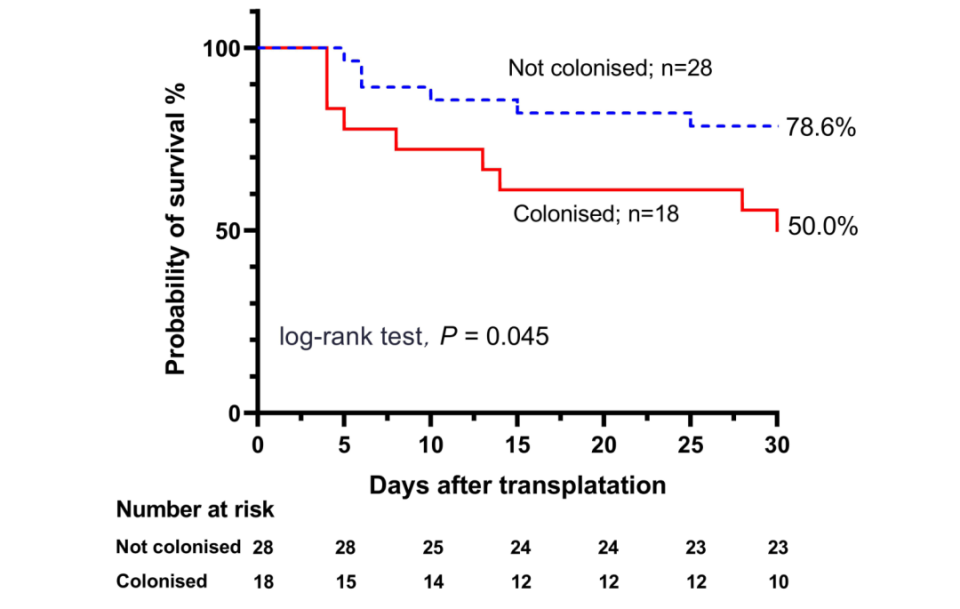 上述研究成果已经发表于Infect Drug Resist杂志[3]。我们团队还有一项未发表的研究,进一步探讨了血液病患者的耐药菌定植,究竟是由于既往抗菌药不合理应用还是宿主因素所导致的。我们针对一个将近2000例血液病患者的大型队列,进行横跨10年的数据分析发现,复发难治性的急性白血病患者的耐药菌定植发生率显著高于缓解的急性白血病患者,表明患者的免疫功能状态也与耐药菌定植相关,这两类患者的肠道微生态、CRE定植发生率等方面均有差异。