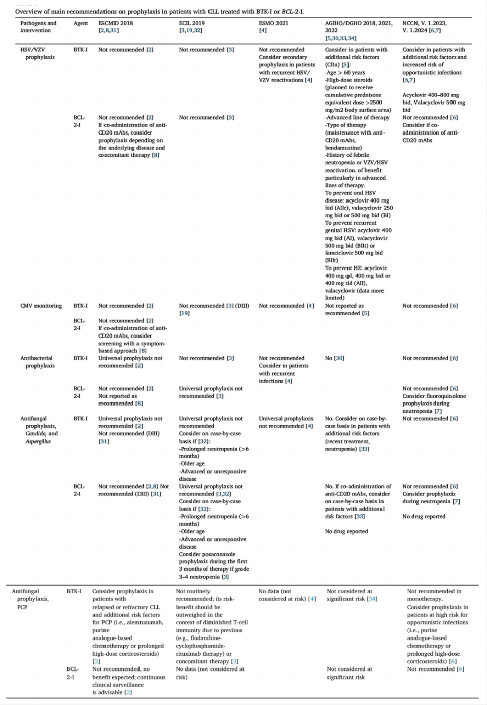 Prevention and management of infectious complications in patients with chronic lymphocytic leukemia (CLL) treated with BTK and BCL-2 inhibitors, focus on current guidelines