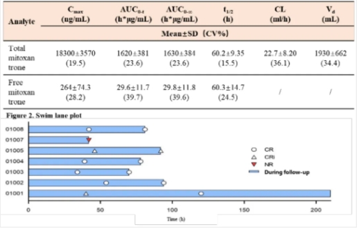 表1. 总米托蒽醌和游离米托蒽醌的PK参数