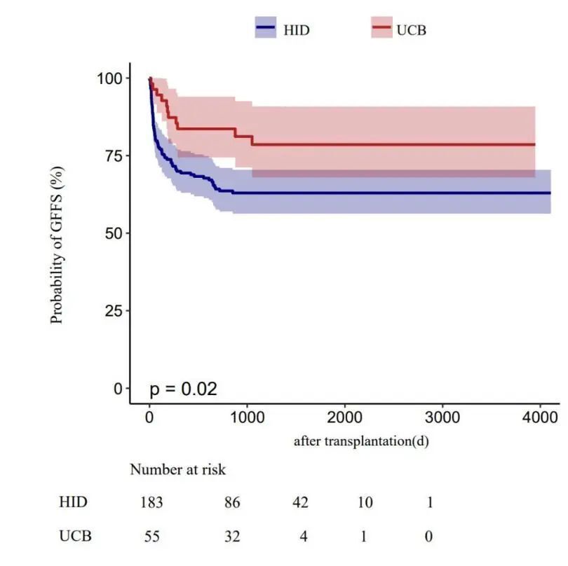 URCB与HID OS相当,但URCB GFFS更高;URCB的aGVHD发生率低于HID,cGVHD发生率与HID相当;URCB的CMV发生率较高,但EBV发生率与HID相当;与HID相比,URCB可作为Allo-HSCT治疗AA的替代供者。