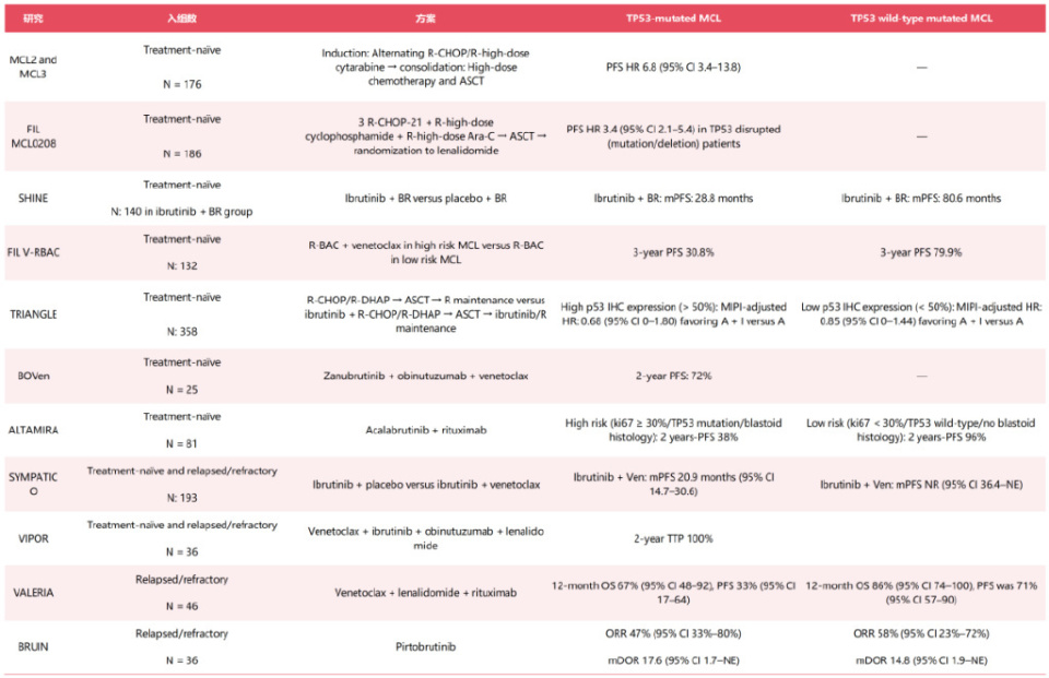 TP53突变型与TP53野生型MCL患者接受标准化疗免疫治疗方案或创新型靶向联合治疗的结局