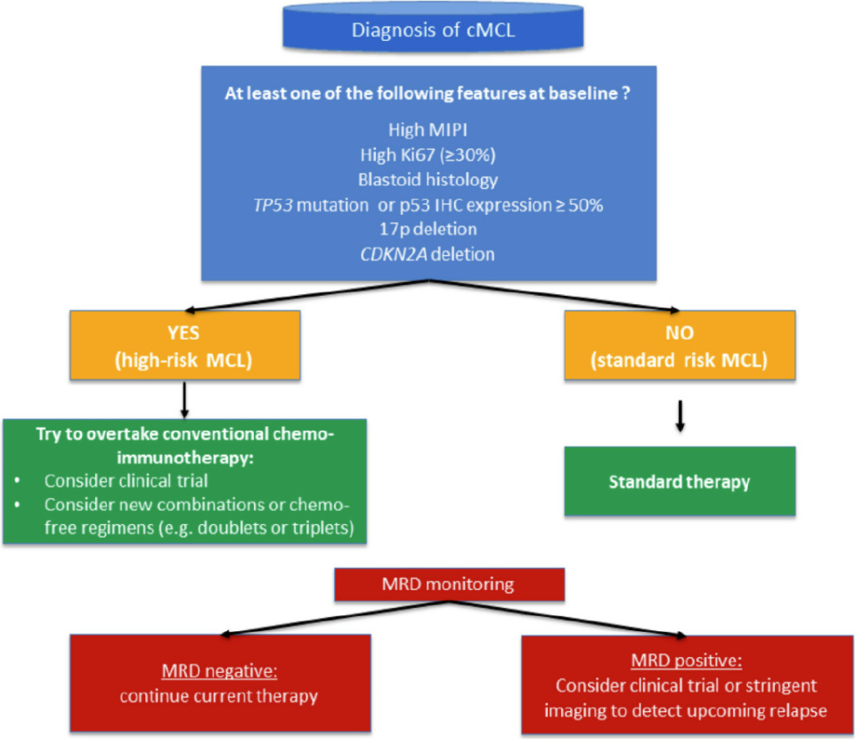 MCL风险评估的进展在日常临床决策中变得至关重要。在需要进一步解析MCL基因组复杂性以精确识别高风险患者的同时,应为高危疾病寻找充分的治疗策略。