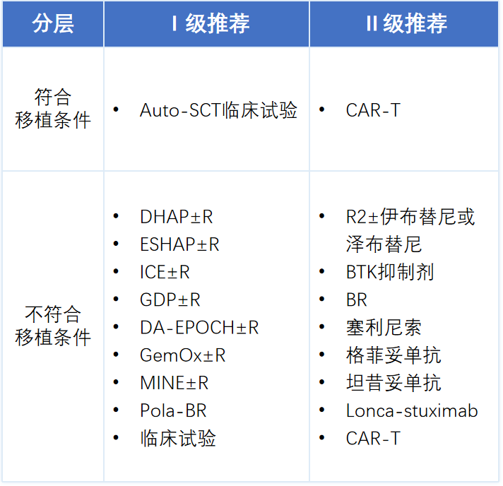 基于最新研究证据,2024 CSCO指南[5]对DLBCL的治疗推荐做出更新,包括在初治患者中新增Pola-R-CHP的I级推荐;在复发/难治患者中,新增格菲妥单抗的II级推荐等。