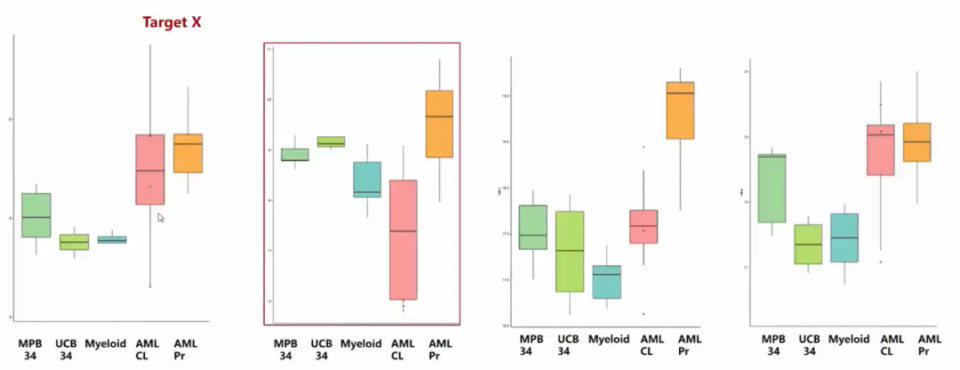 目前针对这个新靶点的CAR-T,我们正在转染病毒,准备申请临床试验。同时,针对该全新靶点的CAR-T,我们还通过已报道的CD70靶点进行了验证。通过对照膜蛋白数据库可以看到,CD70在白血病细胞上呈高表达。为此,我们也制备了靶向CD70的CAR-T,目前病毒已制备完善,准备开展临床试验。说明通过膜蛋白的方式探索新靶点的途径是可行的。除了CD70 CAR-T,我们还制备了自体通用性的CAR-T,并制备了人源化抗体。制备人源化抗体的方式有:(1)通过噬菌体展示的方式制备全人源化抗体;(2)通过小鼠抗体制备人源化抗体,也能确保在体内降低免疫炎性,达到理想的作用。