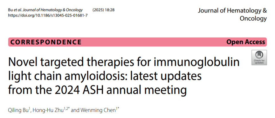 免疫球蛋白轻链(AL)淀粉样变性是一种由单克隆浆细胞分泌的不稳定游离轻链异常沉积引发的难治性疾病,其治疗核心在于通过深度血液学缓解改善或逆转器官功能障碍。传统治疗方案已无法充分满足AL患者需求,而针对恶性浆细胞或淀粉样蛋白的靶向治疗正在显著改善预后。基于2024年美国血液学会(ASH)年会最新报告,发表在Journal of Hematology & Oncology上的文章系统阐述了AL淀粉样变性的靶向治疗进展。