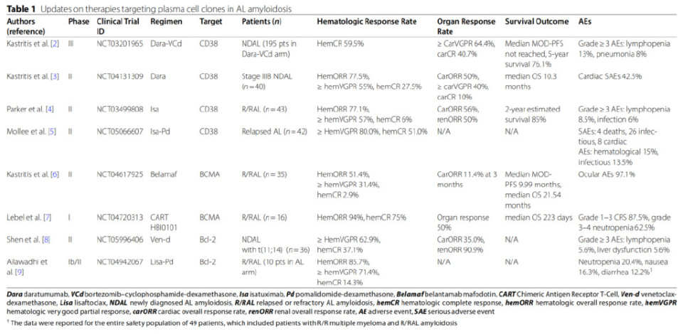 1. Kastritis E, Palladini G, Minnema MC, Wechalekar AD, Jaccard A, Lee HC, Sanchorawala V, Gibbs S, Mollee P, Venner CP, et al. Daratumumab-Based treatment for Immunoglobulin Light-Chain amyloidosis. N Engl J Med. 2021;385(1):46–58.