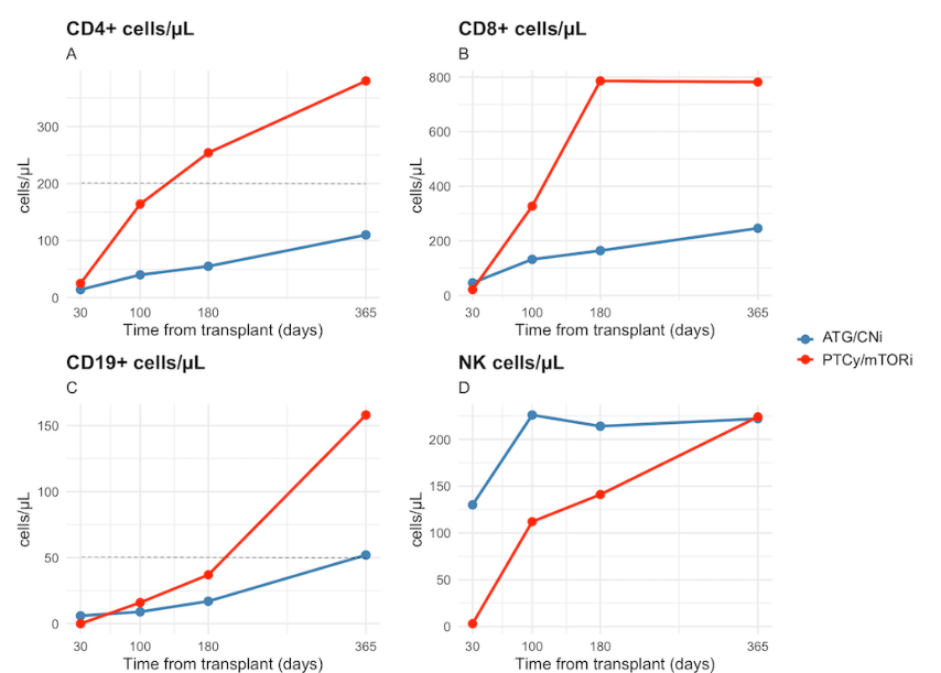 PT-Cy vs ATG免疫重建差异:高风险髓系恶性肿瘤MUD移植