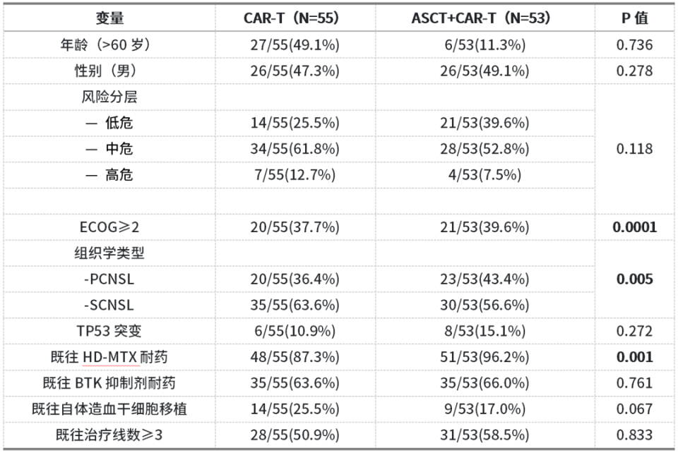 在108名BE组患者中,ASCT联合CAR-T组的中位PFS显著延长(57.11个月 vs. 27.35个月,P=0.001)。两组的中位OS均未达到(p = 0.053)。两组之间CRS与ICANS发生率无统计学差异。