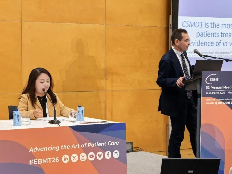 2026年3月22日-25日,第52届欧洲血液与骨髓移植学会(EBMT)年会于西班牙马德里正式召开。作为该领域最具影响力的学术会议,本届年会汇集了全球数千名专家学者,共同探讨移植与细胞治疗的最新进展。会议期间,浙江大学医学院附属第一医院冯晶晶博士分享了题为“CD19与BCMA靶向CAR-T细胞联合输注治疗复发/难治性中枢神经系统及髓外疾病:一项I期临床试验及机制探索”的口头报告,为优化临床策略提供了重要依据,并摘得最佳青年摘要奖(Best Young Abstracts)。《血液时讯》特邀冯晶晶博士接受采访,深入解读该研究的核心发现及其对临床实践与未来研究方向的启示。